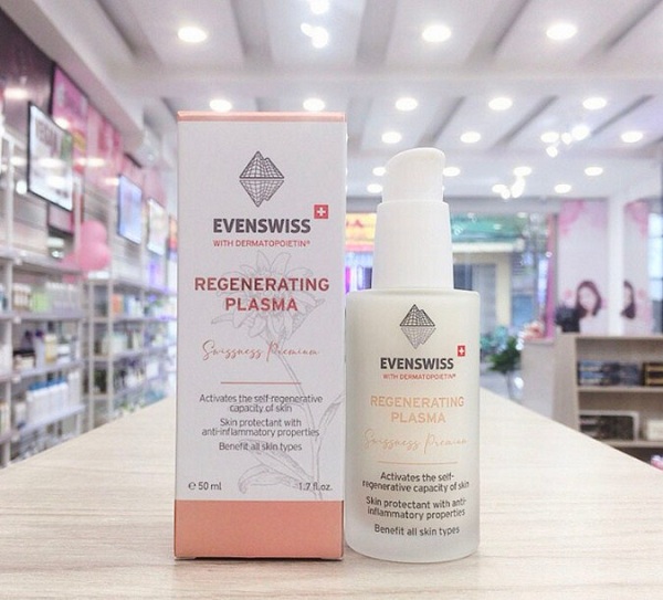 Evenswiss có chứa phức hợp Vitamin A, B5, E, F giúp cải thiện nhanh chóng làn da hư tổn bằng cách phục hồi các tế bào da bị tổn tương, thúc đẩy quá trình tái tạo tế bào da mới để thay vào đó là làn da bóng khỏe. Đặc biệt còn cải thiện thiện tượng chảy xệ trên da, làm mờ nếp nhăn do sản sinh ra lượng collagen thiết yếu để bù vào lượng collagen đã mất trước đó.
