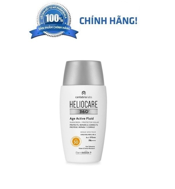 Kem Chống Nắng Heliocare 360 Age Active Fluid SPF50 PA++++ 50mL bảo vệ và giúp ngăn ngừa các dấu hiệu lão hóa do tia UVB, UVA, Visible Light và IV-A gây ra.