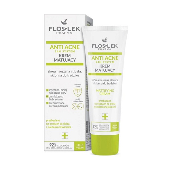 Kem dưỡng ẩm và kiểm soát dầu Floslek Anti Acne Mattifying Cream là một trong những dòng sản phẩm best seller của dược mỹ phẩm Floslex Ba Lan. Với công dụng chính dưỡng ẩm, phục hồi da, ngăn quá trình mất nước và lão hóa cho da. Chất kem cực kỳ mỏng nhẹ, dễ tán và thấm nhanh trên da. Đặc tính kiểm soát dầu tốt phù hợp với những làn da dầu mụn, da khô bong tróc, da dễ bị viêm cơ địa.