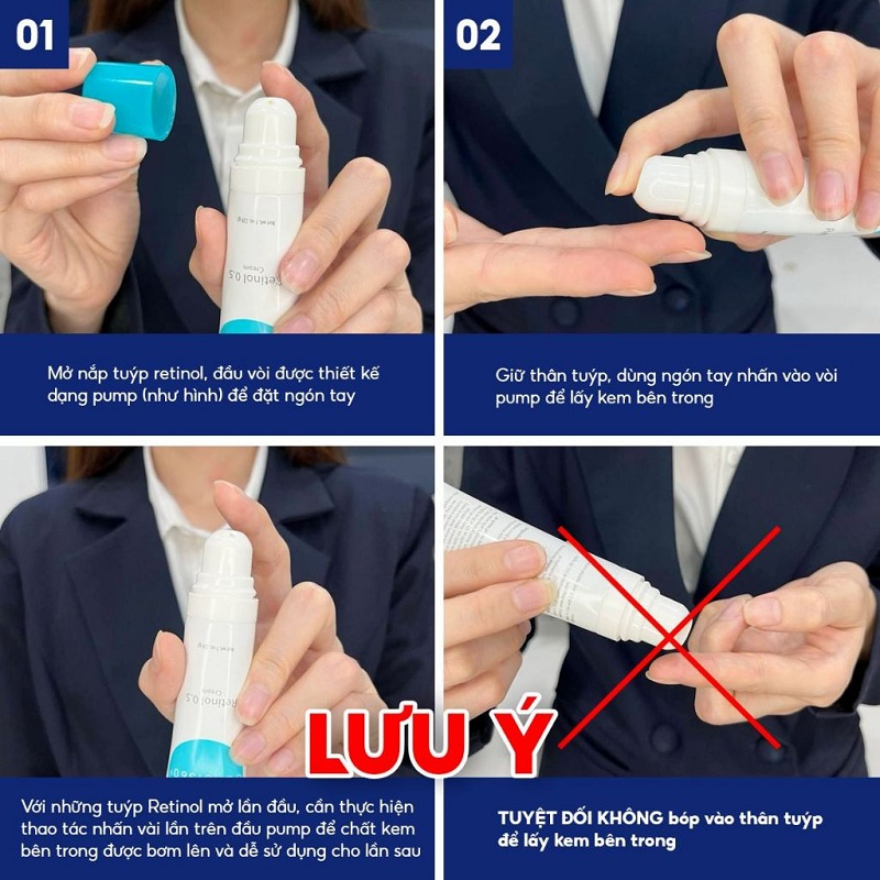 - Nồng độ Retinol 0.5%: phù hợp cho người mới bắt đầu sử dụng Retinol, da gặp vấn đề về lão hoá, mụn nhẹ.