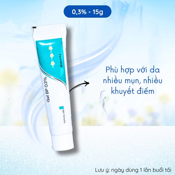 Lấy lượng gel vừa đủ, thoa một lớp mỏng lên vùng da mụn (không bôi toàn mặt nếu da không cần).