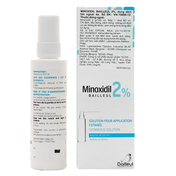 Minoxidil 2% 60 ml được chỉ định dùng trong các trường hợp bị chứng rụng tóc ở mức độ trung bình ở người lớn, nam hay nữ. 1 Hộp 3 Lọ.