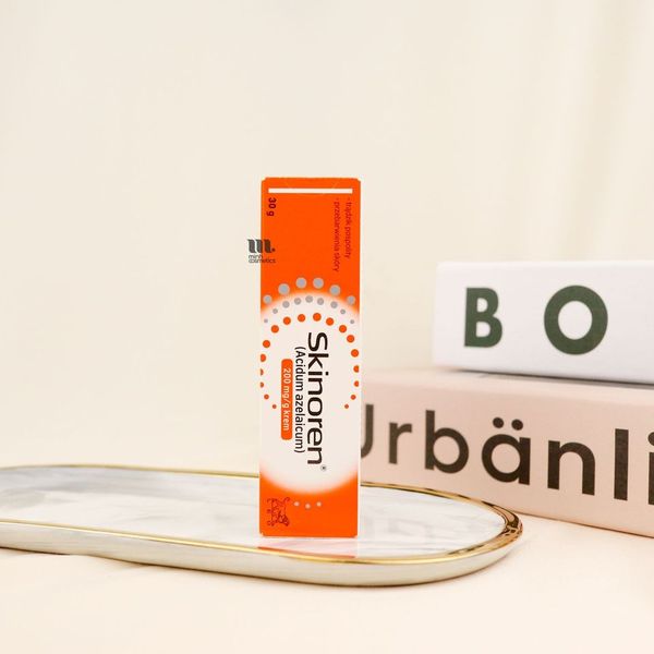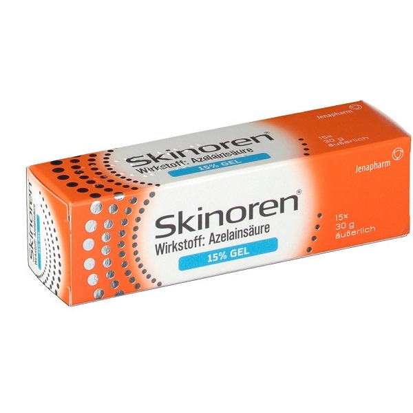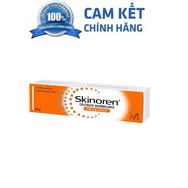 Kem giảm Mụn Skinoren Acidum Azelaicum 30g chứa 20% Azelaic acid một thành phần đa dụng và dịu nhe cho da. Azelaic acid có công dụng với hầu hết các loại mụn từ mụn viêm đến mụn không viêm. Bên cạnh đó, Azelaic acid giảm thâm thông qua cơ chế ức chế enzyme tyrosinase. Một đặc điểm nổi bật là Azelaic acid rất dễ dung nạp và sử dụng, do đó hầu như không gây kích ứng mạnh trên da khi sử dụng.