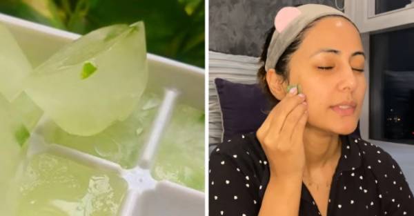 Bước 3: Sau khi hỗn hợp đã đóng đá là có thể tiến hành chườm lạnh. Sử dụng một khăn vải mỏng, bọc đá rồi massage lên mặt.