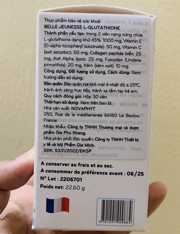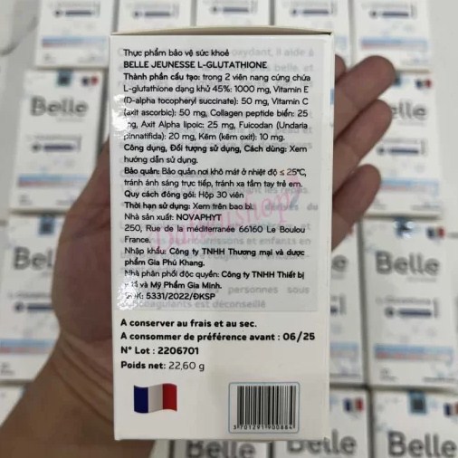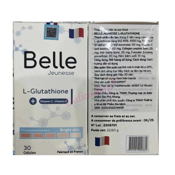 - Belle Jeunesse L-glutathione làm sáng da: L-Glutathione và Vitamin C là hai thành phần chính trong sản phẩm, giúp làm sáng da, giảm sắc tố đen, tàn nhang, nám và đốm nâu.